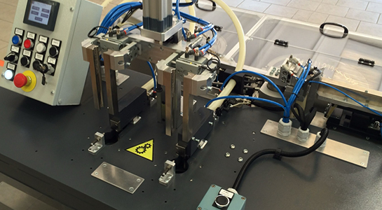 The operator inserts the ends of the pre-cut tube in two grippers, after having added the nuts manually. The correct crimping position is obtained by introducing tubes until a specific level. Through a pedal, the operator can start the automatic assembly and crimping cycle.